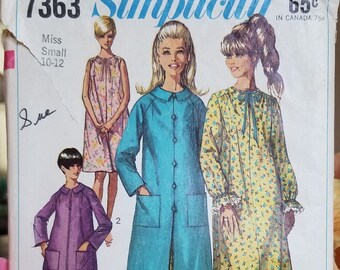 Simplicity 7363 Uncut Vtg 1960 S Women S Robe And Nightgown Sewing Pattern Size Small 10 12